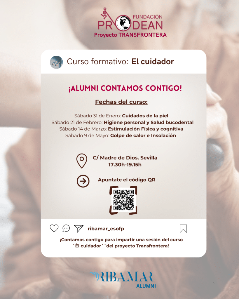 Dentro el convenio de colaboración que el centro educativo Ribamar tiene con Fundación Prodean, este curso 2025/26 va a preparar varias sesiones formativas para las cuidadoras que la Fundación forma como vehículo para su integración, la búsqueda de empleo en Sevilla y el desempeño de sus funciones. Se hará a través del proyecto Transfrontera que ofrece formación para capacitar a las alumnas, para ser mejores profesionales del hogar y para que hagan mejor su trabajo.