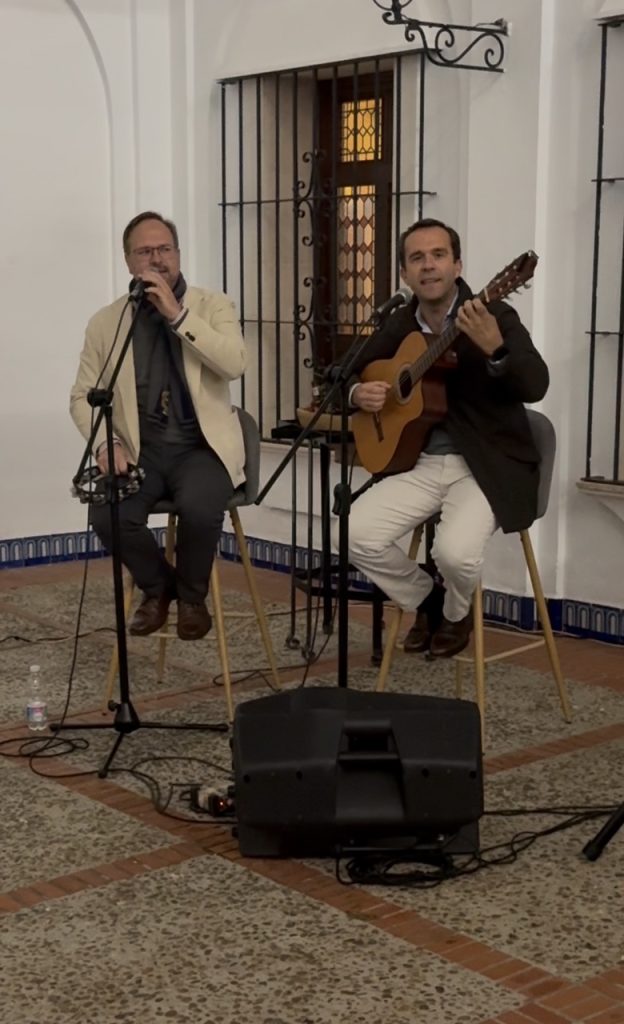 Tras los parlamentos, los asistentes disfrutaron de una merienda alrededor de la candela mientras sonaban villancicos tradicionales y rocieros. La velada estuvo amenizada por Casto Domínguez y por Clara de la Virgen de la Alegría, quienes pusieron ritmo, emoción y ambiente festivo a esta Zambomba solidaria.